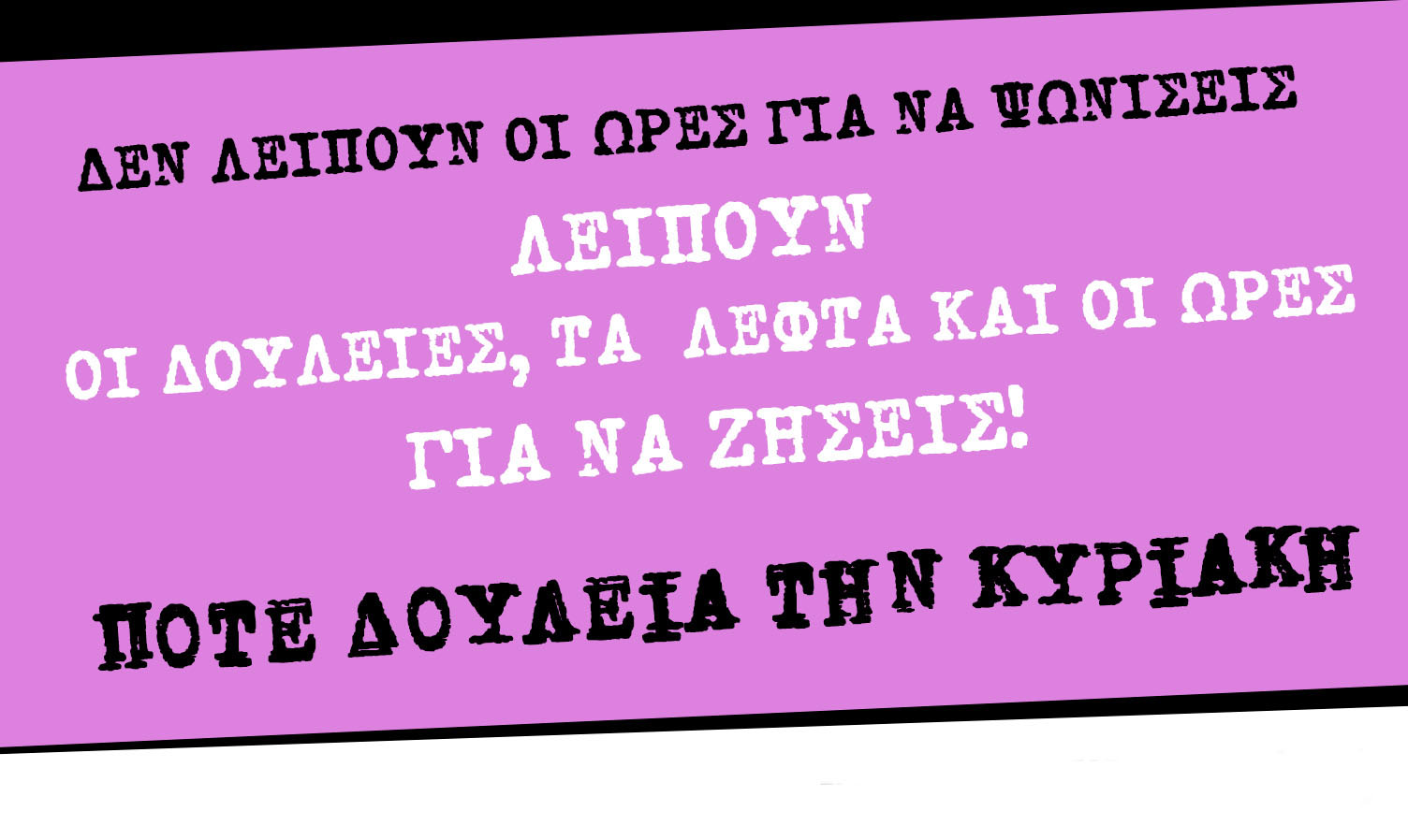 Δε ψωνίζουμε Κυριακή, δε δουλεύουμε Κυριακή!