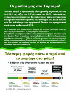 Η Πρωτομαγιά του 2024 βρίσκει για μια ακόμα χρονιά τις εργαζόμενες και τους εργαζόμενους της χώρας αντιμέτωπους με μια άνευ προηγουμένου κρίση διαβίωσης. Η ακρίβεια, η κοινωνική φτώχεια, ο περιορισμός εργασιακών δικαιωμάτων, η επισφάλεια και η ανασφάλεια στους χώρους εργασίας, είναι οι κυρίαρχες συνέπειες των εφαρμοζόμενων πολιτικών. Η φετινή Εργατική Πρωτομαγιά είναι κυριολεκτικά ματωμένη από τους πολέμους που μας συγκλονίζουν και μας ζητά να παραμείνουμε στις επάλξεις, να εντείνουμε τους αγώνες μας και ενωμένοι να ξανακερδίσουμε όλα αυτά που χάθηκαν τα χρόνια των διαδοχικών κρίσεων.