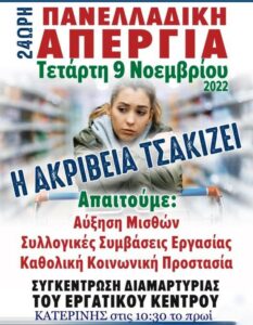 Κεντρικό αίτημα και επίκεντρο της απεργιακής συγκέντρωσης μας και των διεκδικήσεων μας είναι οι αυξήσεις των μισθών, η λήψη άμεσων μέτρων για την αντιμετώπιση της ακρίβειας, η πάταξη της αισχροκέρδειας, σχέδιο για την κοινωνική κατοικία και η επαναφορά των Συλλογικών Συμβάσεων Εργασίας Τώρα!