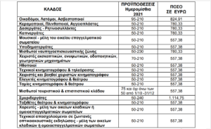 ΠΙΝΑΚΑΣ ανά ΚΑΤΗΓΟΡΙΑ με το ύψος του ΒΟΗΘΗΜΑΤΟΣ