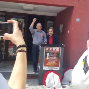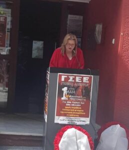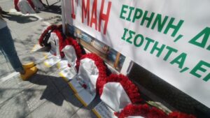 Τέλος, απαιτούμε να σταματήσουν αμέσως όλες οι πολεμικές συγκρούσεις γιατί ο κόσμος της μισθωτής εργασίας απαιτεί πάντα και μόνο ειρήνη οπουδήποτε στον κόσμο και διατρανώνουμε και σήμερα την απαίτησή μας για απόδοση δικαιοσύνης στο έγκλημα των Τεμπών και συνολικά για την αποκατάσταση του κράτους δικαίου.